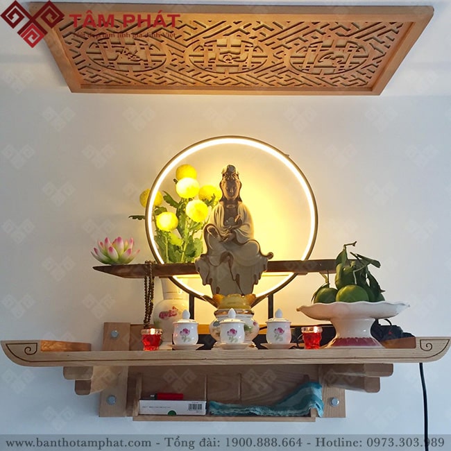 - Tuyệt đối không thờ chung: Bàn thờ Phật phải tách biệt hoàn toàn với bàn thờ gia tiên, Thần Tài – Ông Địa. Theo nguyên tắc, Phật đặt cao nhất, sau đó đến bàn thờ gia tiên (cũng đặt cao), và cuối cùng là bàn thờ Thần Tài (dưới đất). Không được đặt tượng Phật thấp hơn hoặc cùng cấp với bài vị gia tiên.
